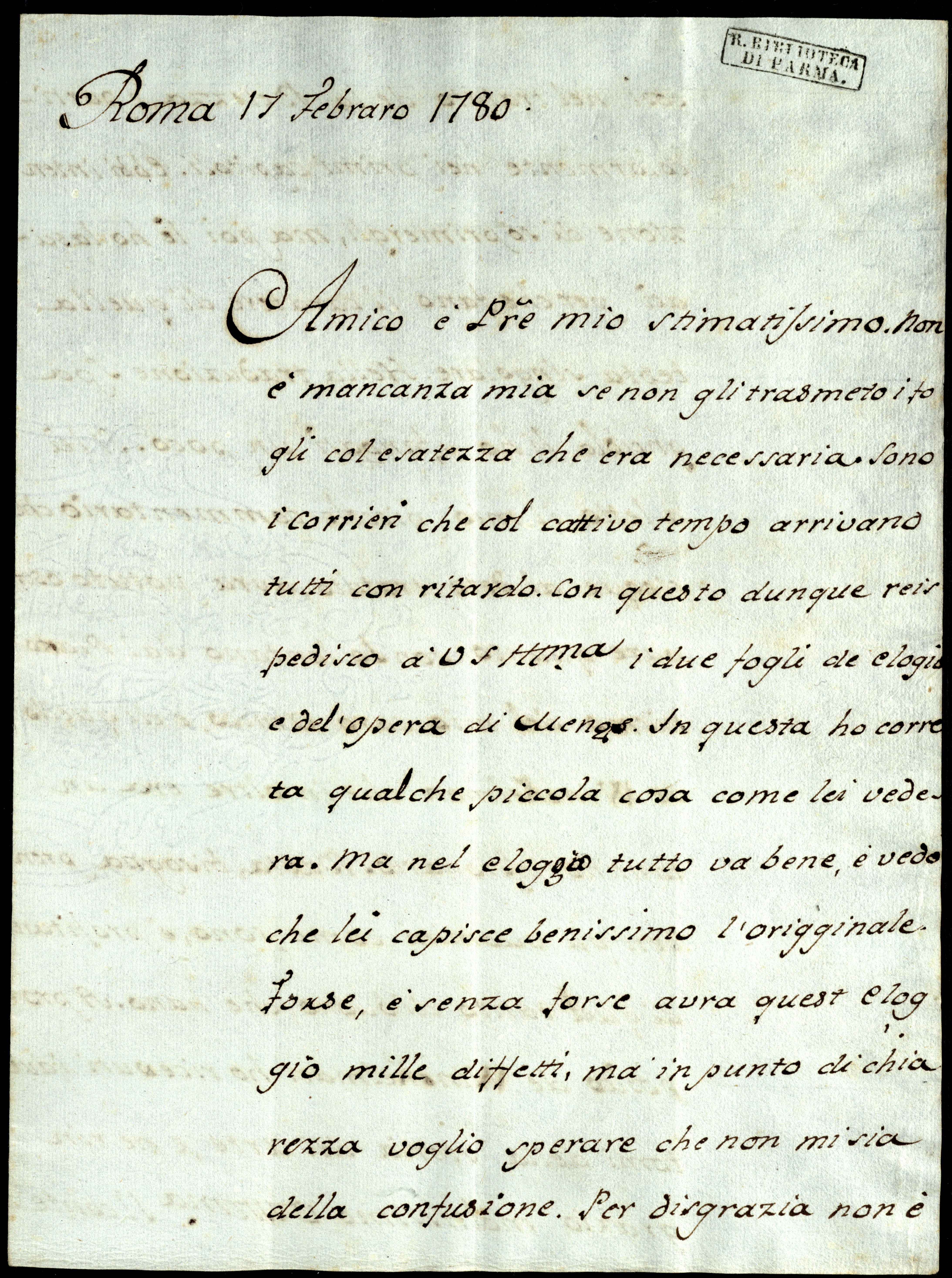 Parma, Biblioteca Palatina, Archivio Bodoni, Lettere ricevute, C. 28, 17.