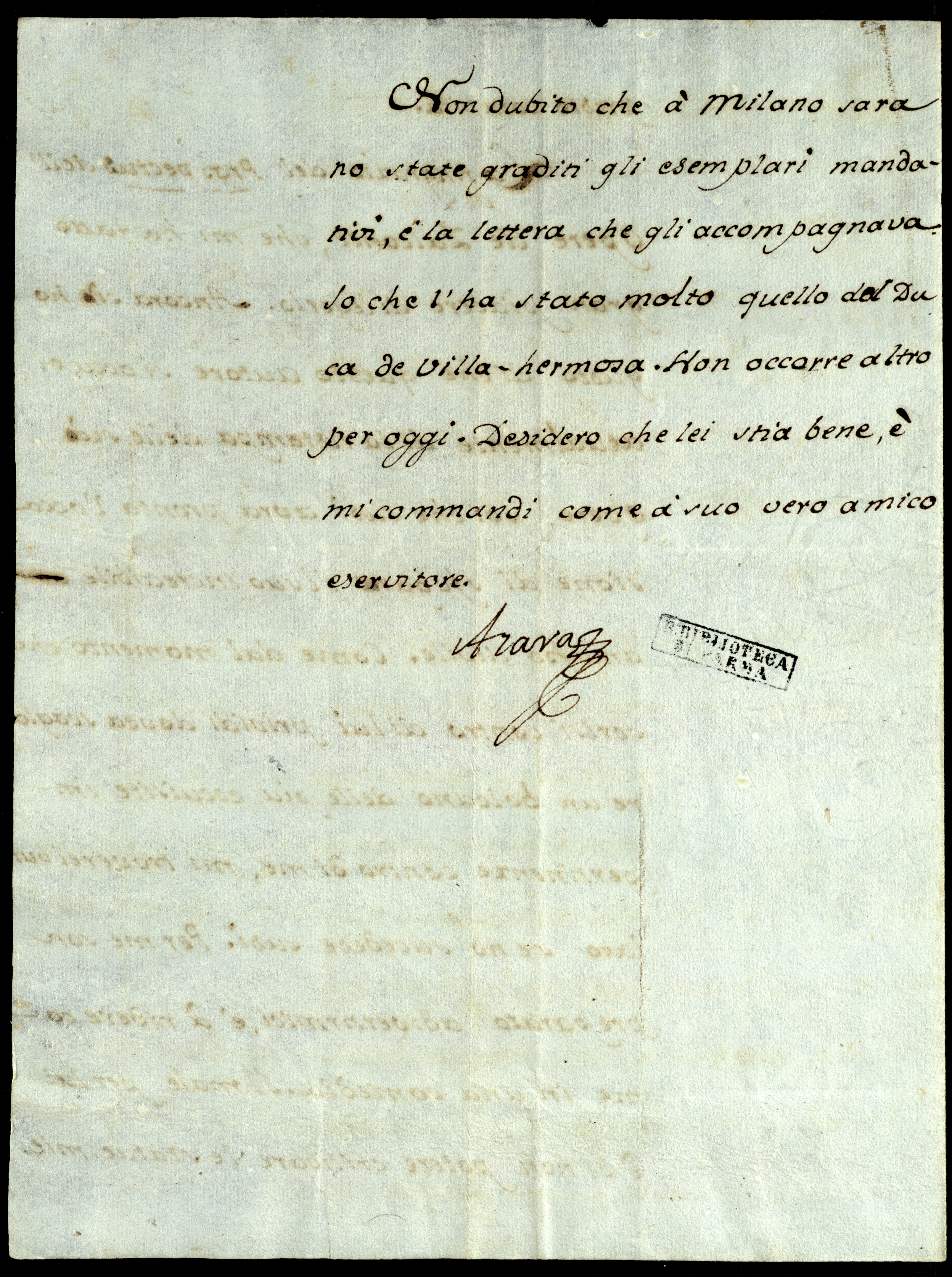 Non dubito che a Milano sarano state graditi gli esemplari mandativi e la lettera che gli accompagnava. So che l’ha stato molto quello dal Duca de Villahermosa.