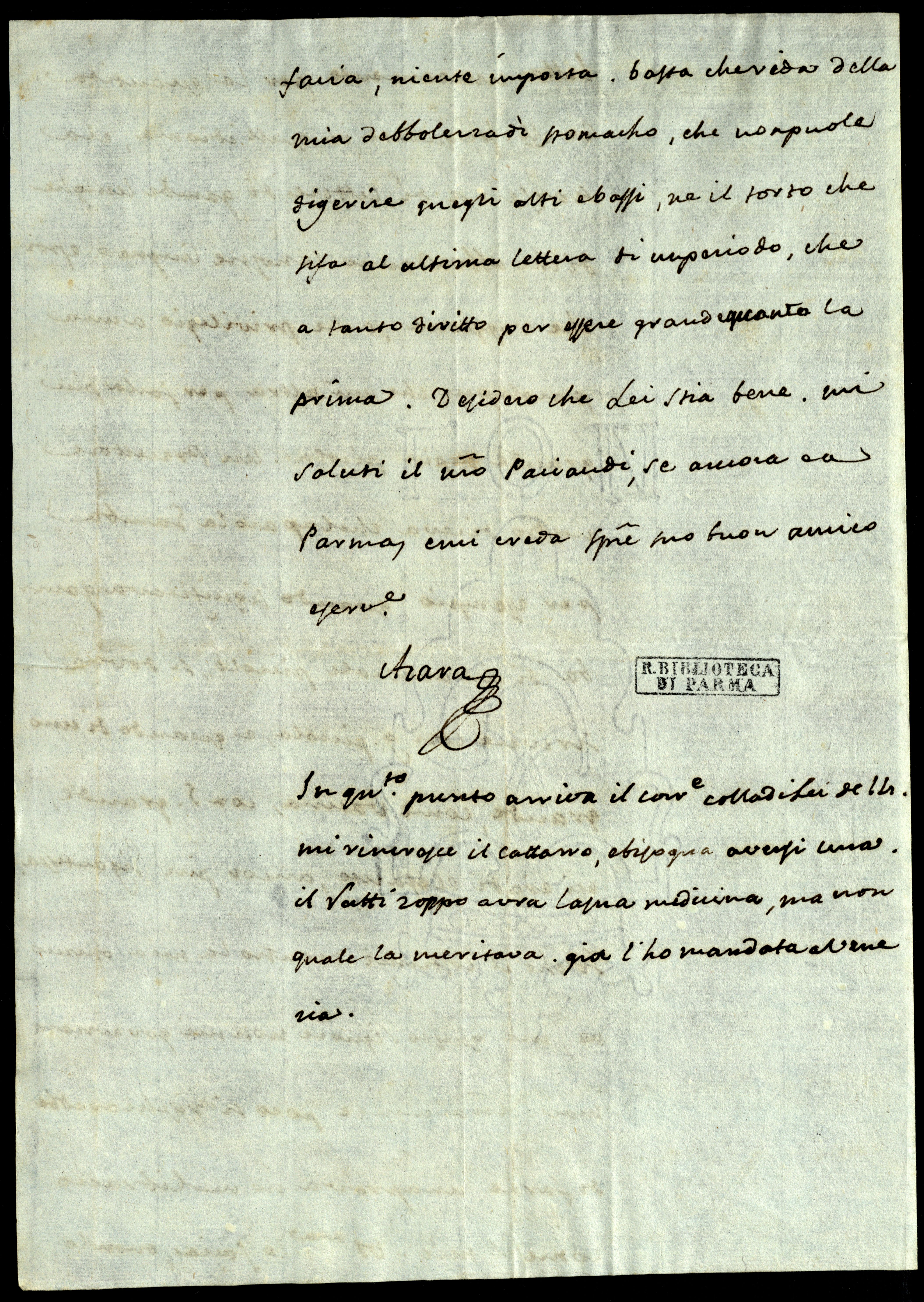 Desidero che Lei stia bene. Mi saluti il nostro Paciaudi, se ancora è a Parma.