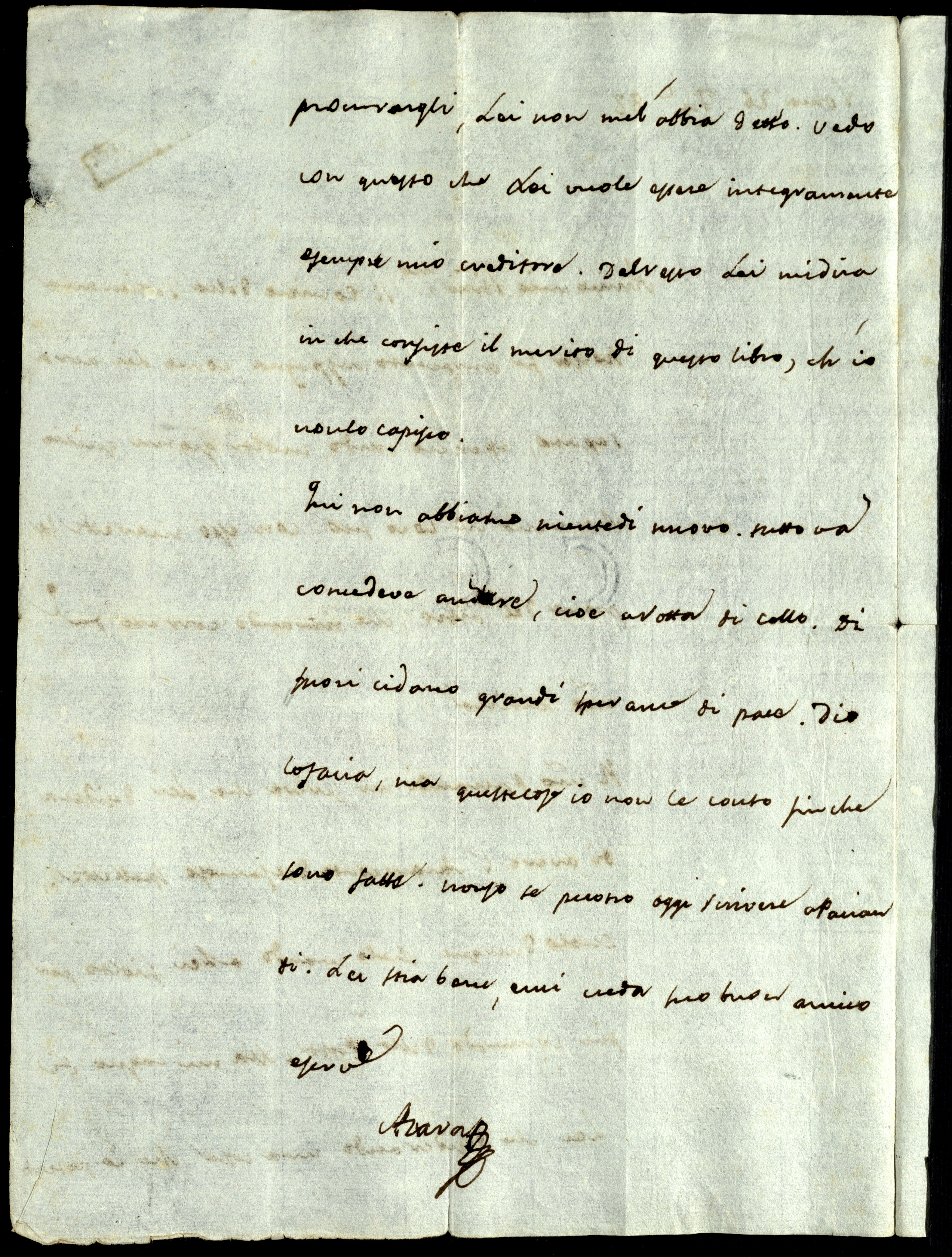 Qui non abbiamo niente di nuovo. Tutto va come deve andare; cioè a rotta di collo. Di fuori ci dano grandi speranze di pace. Dio lo facia, ma queste cose io non le conto finché sono fatte.