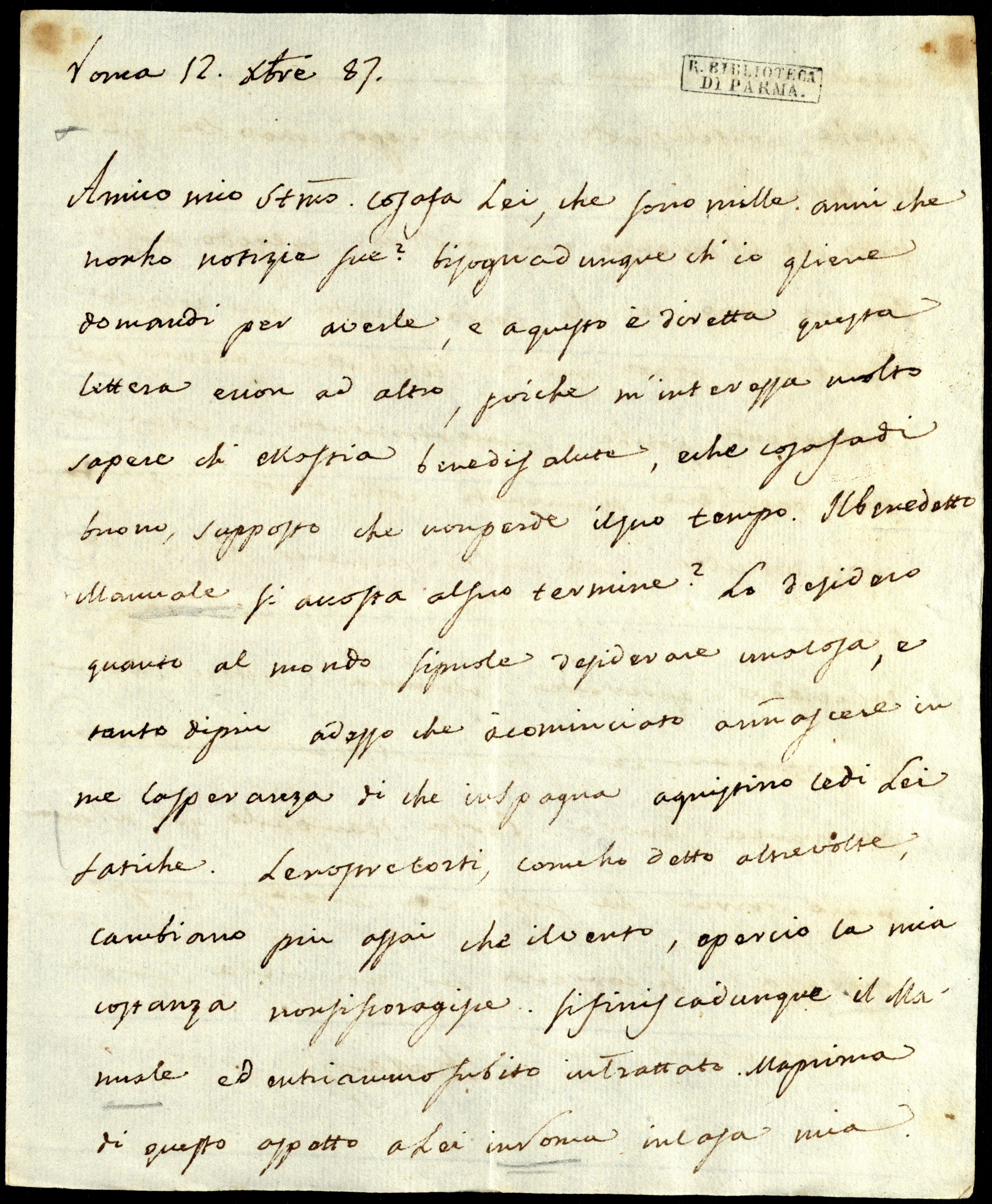 Parma, Biblioteca Palatina, Archivio Bodoni, Lettere ricevute, C. 28, 180.