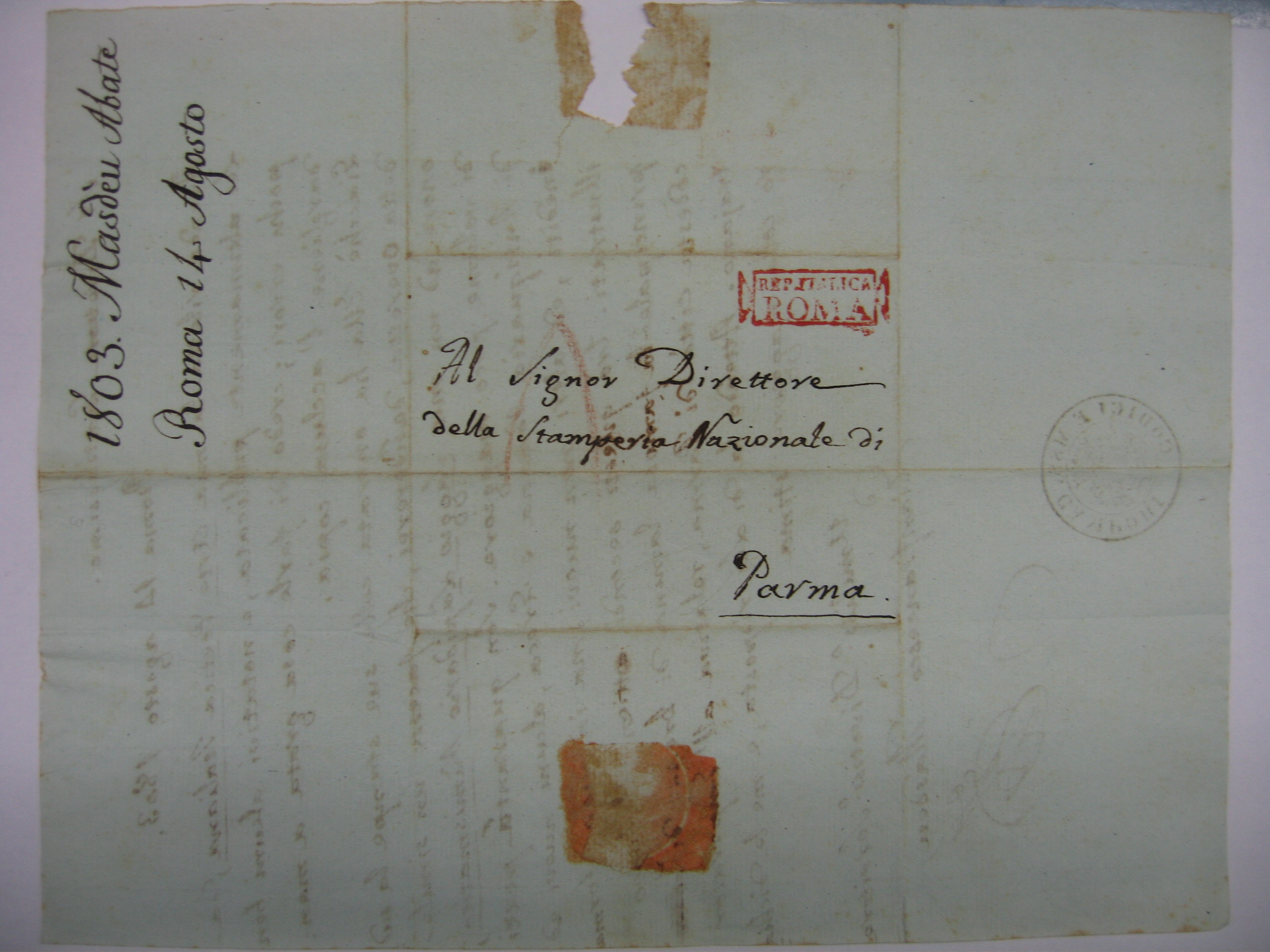 De Juan Francisco Masdeu [Roma] a Giambattista Bodoni [Parma].