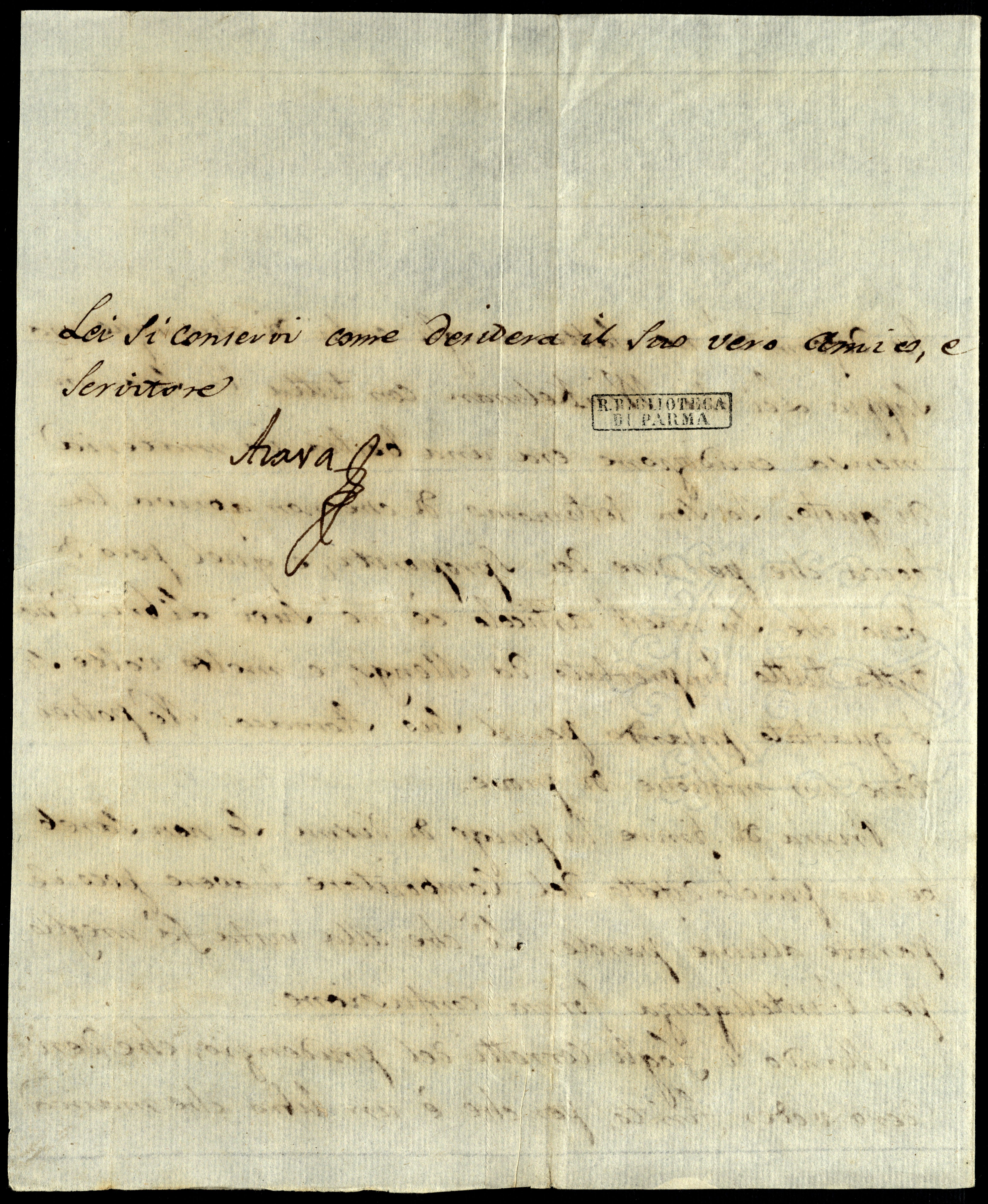 Lei si conservi come desidera il Suo vero amico e servitore,