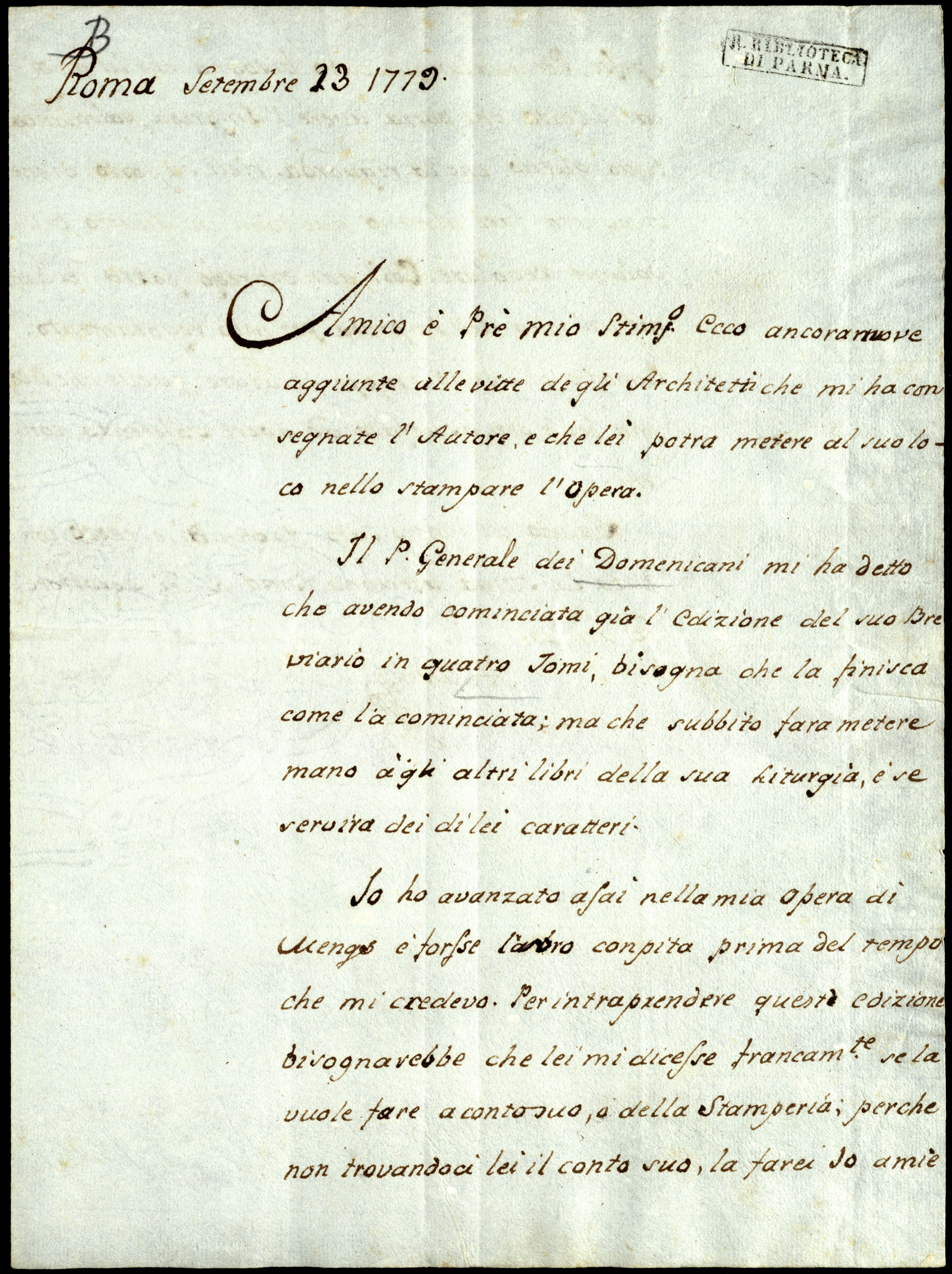 Parma, Biblioteca Palatina, Archivio Bodoni, Lettere ricevute, C. 28, 10.