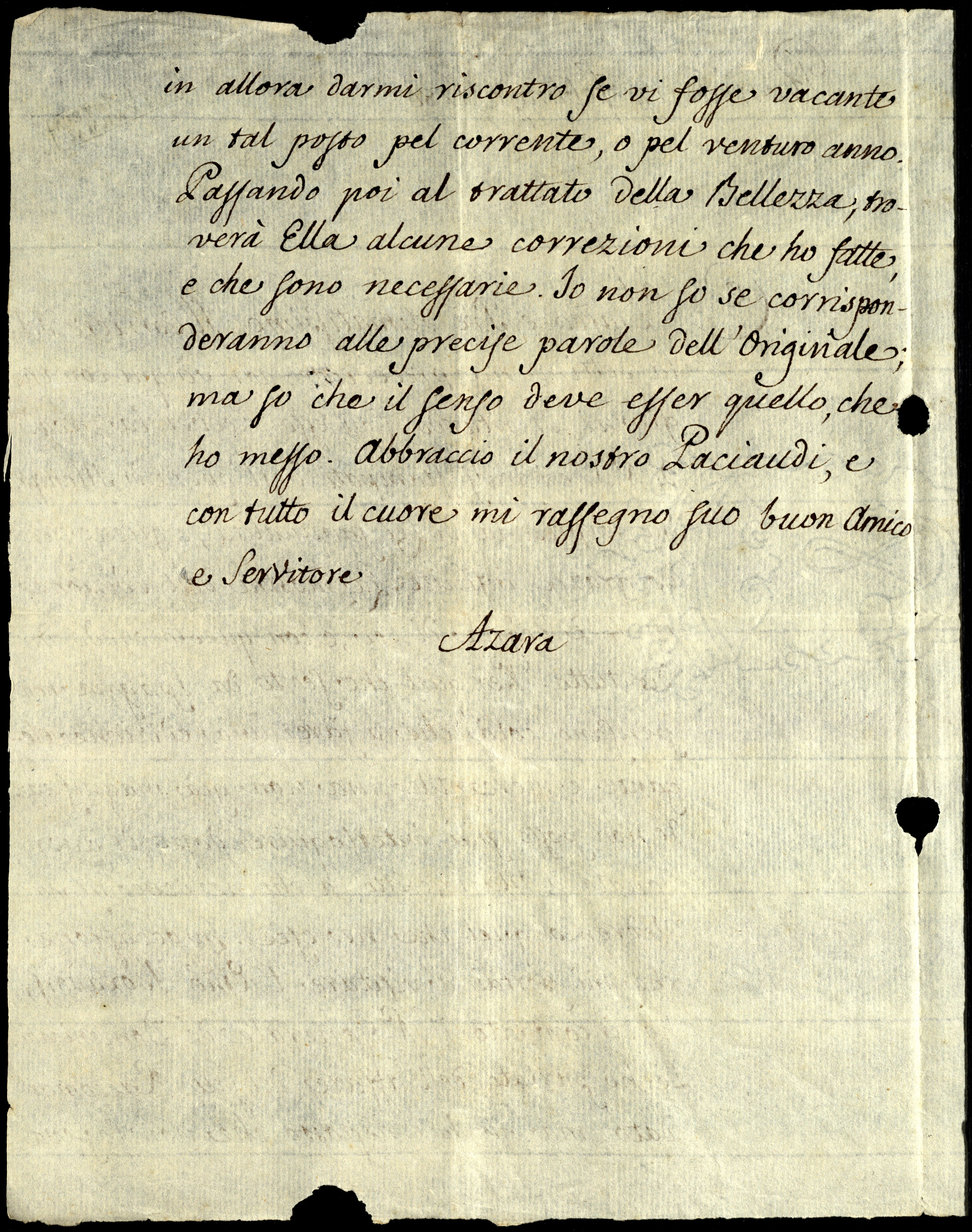 Passando poi al trattato della bellezza, troverà Ella alcune correzioni che ho fatte e che sono necessarie. Io non so se corrisponderanno alle precise parole dell’originale, ma so che il senso deve esser quello che ho messo.