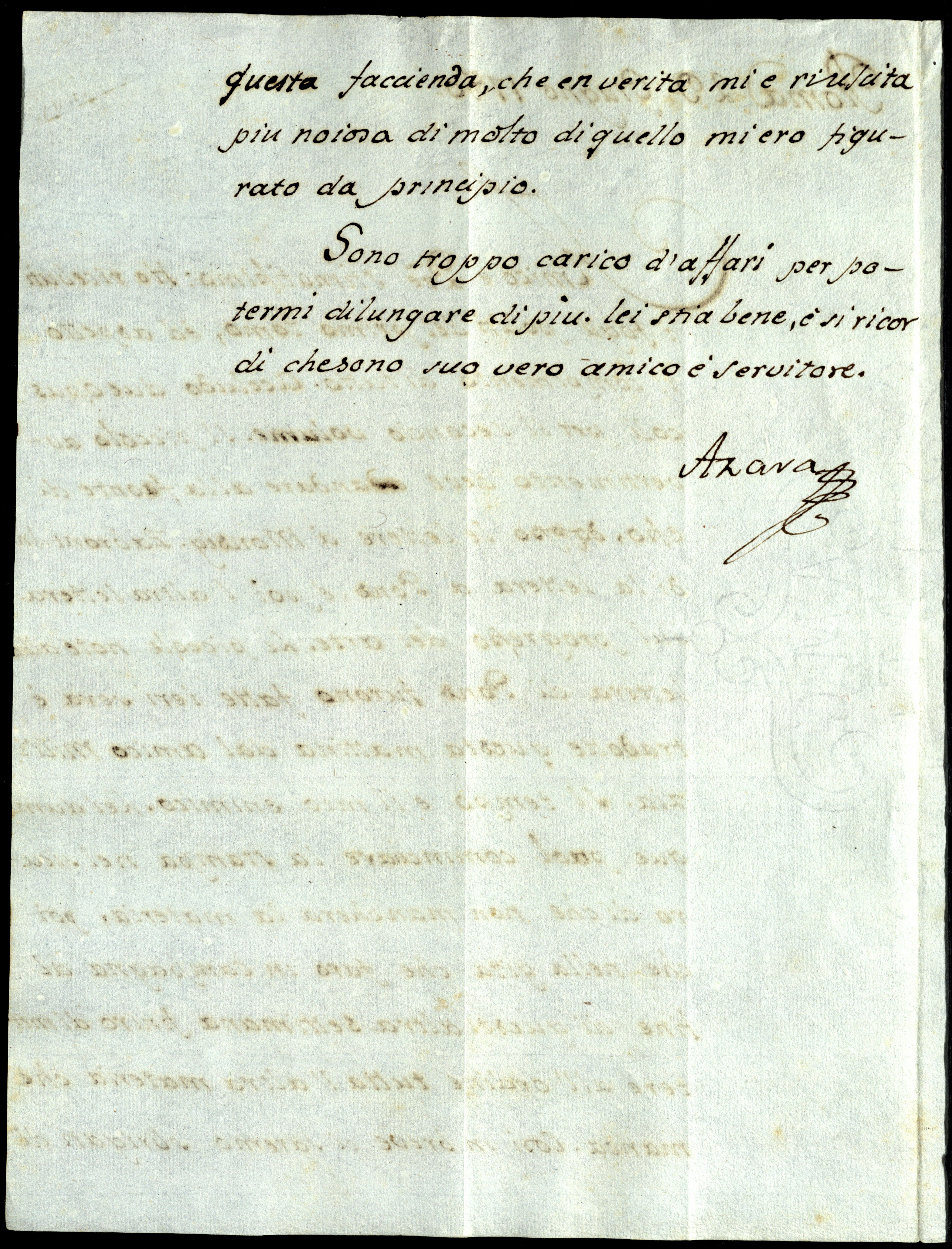Sono troppo carico d’affari per potermi dilungare di più. Lei stia bene e si ricordi che sono Suo vero amico e servitore,