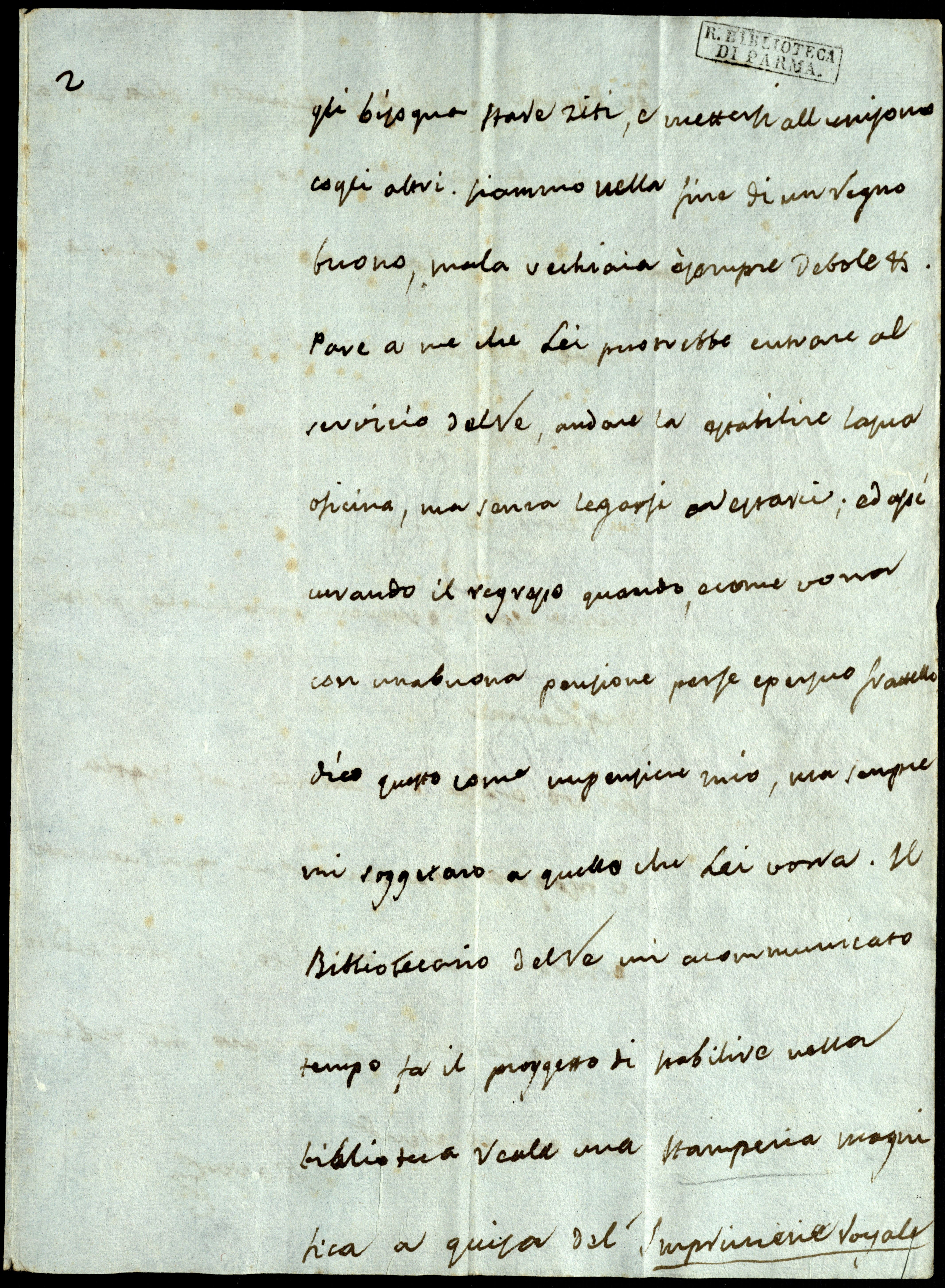Il Bibliotecario del Re mi ha communicato tempo fa il proggetto di stabilire nella Biblioteca Reale una stamperia magnifica a guisa del’Imprimerieb Royale de Parigi. Io l’ho trattenutto colla mira sempre di Lei. Il nostro Ministro è il più adattatto per fare cose utili: ama le lettere e le arti e credo si prestarà a quanto di grande gli proporremmo. Insomma, Lei ci pensi e mi dica con franchezza i Suoi pensieri perché io possa regolarmi.