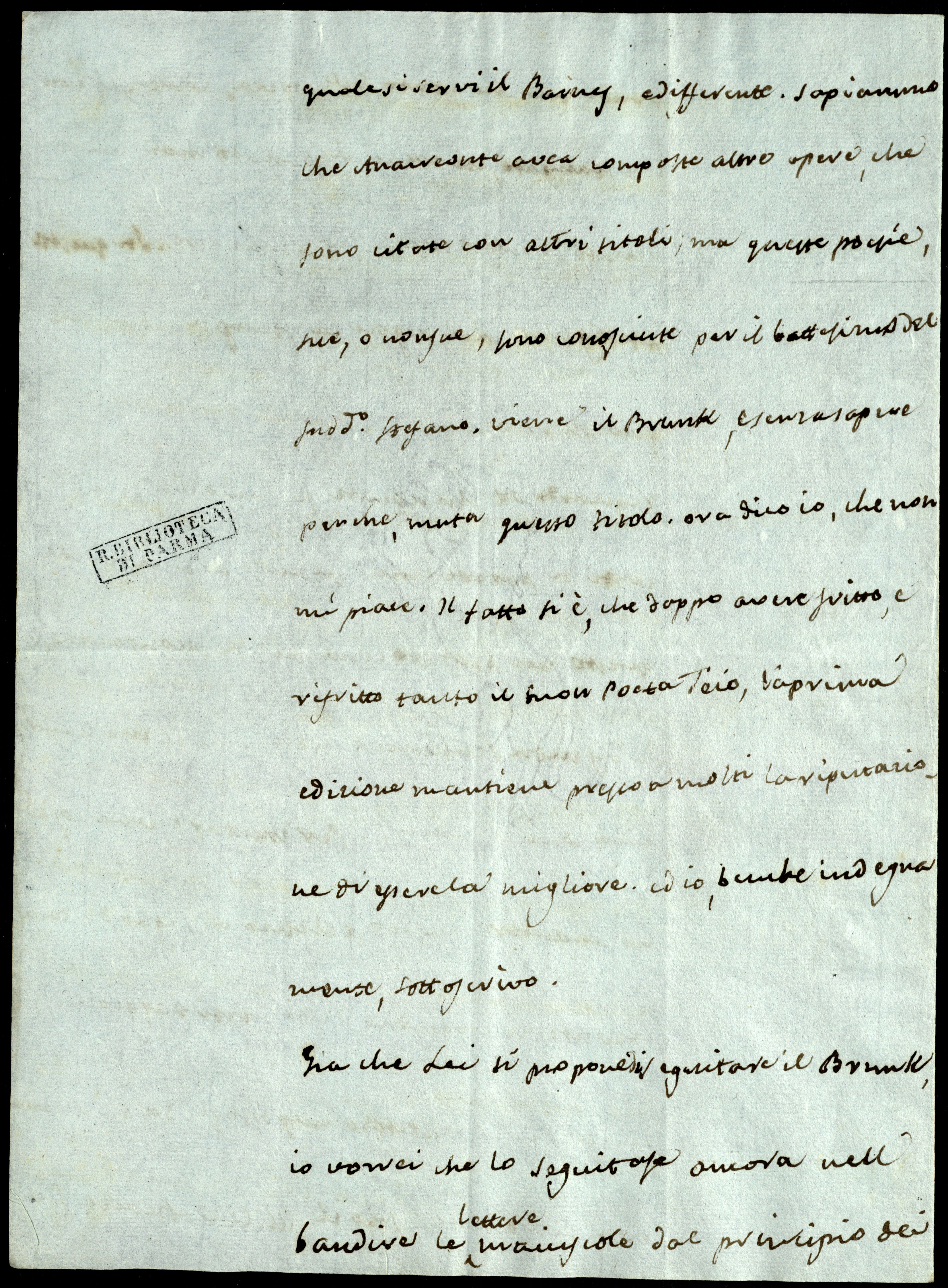 Parma, Biblioteca Palatina, Archivio Bodoni, Lettere ricevute, C. 28, 119.