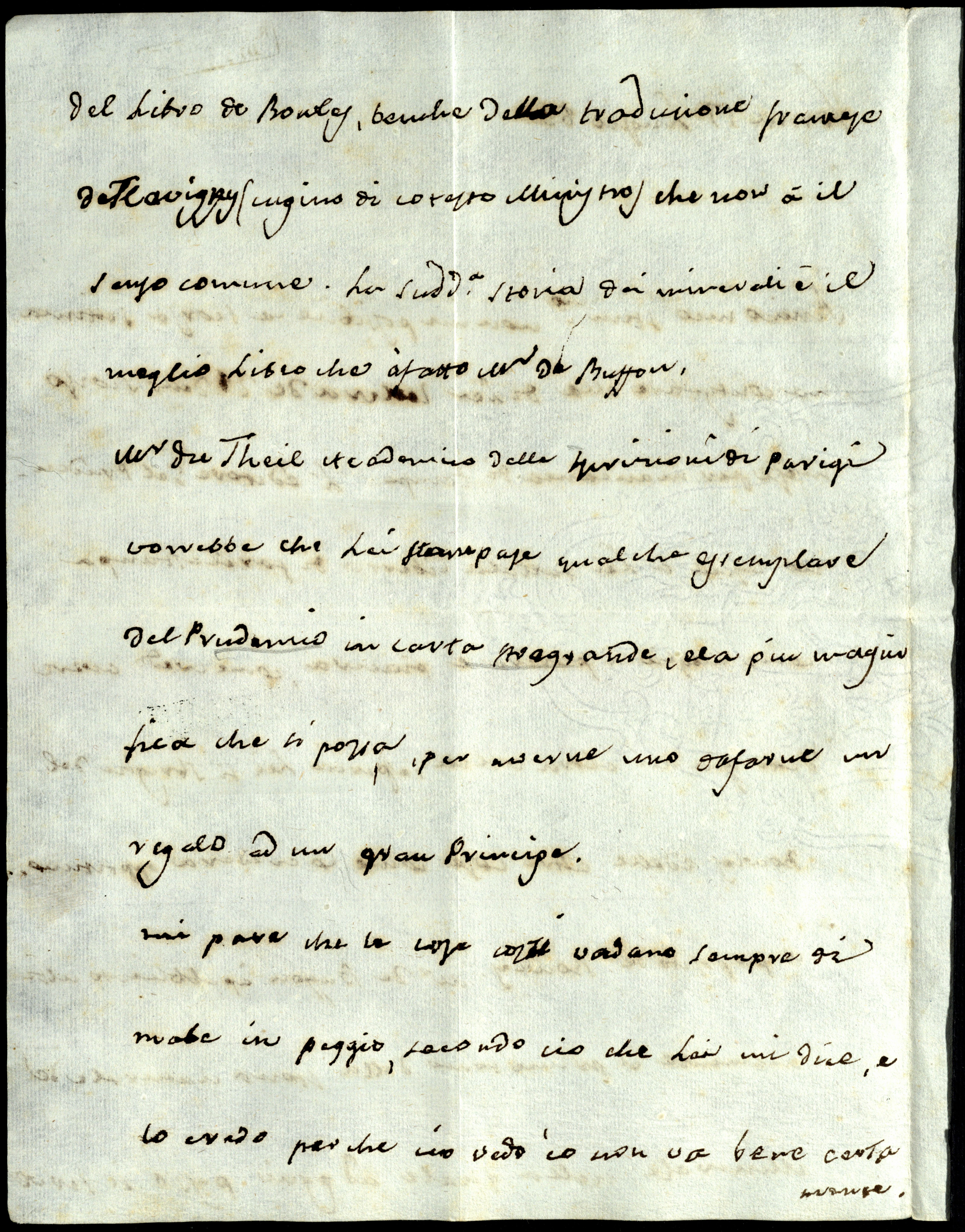 Monsieur Dutheil, Academico delle Iscrizioni di Parigi, vorrebbe che Lei stampase qualche essemplare del Prudenzio in carta stragrande e la più magnifica che si possa, per averne uno da farne un regalo ad un gran Principe.